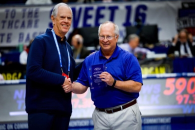 Classmate Mark Maynard received the Bob White/Mike Fields Service award at Rupp Arena on March 19,2026. This award is presented annually to an individual who has made a significant impact in the field of media service. This award recognizes Mark's dedication to promoting student-athletes, coaches and officials, as well as his service to interscholastic athletics.